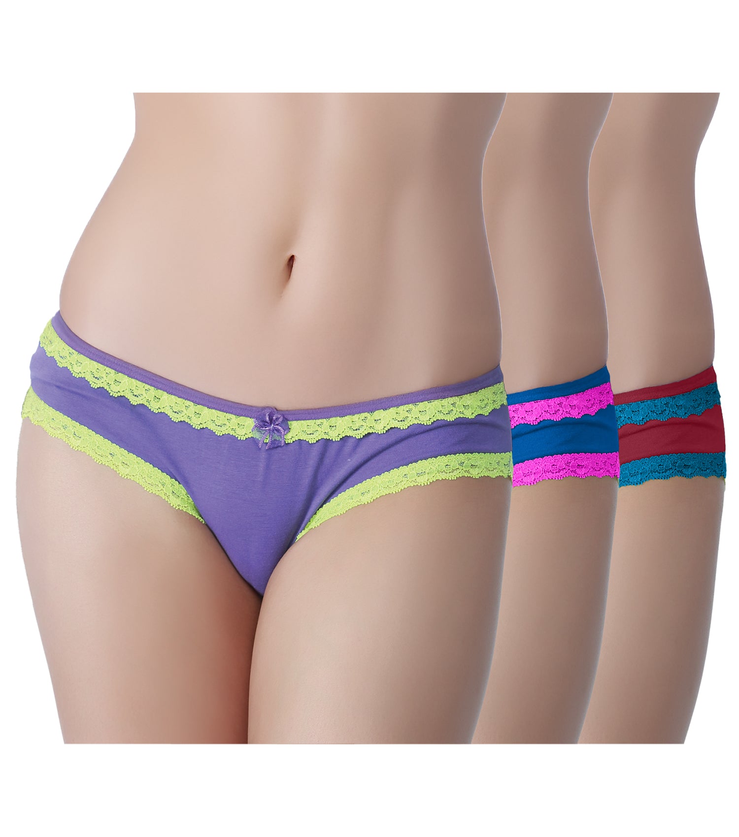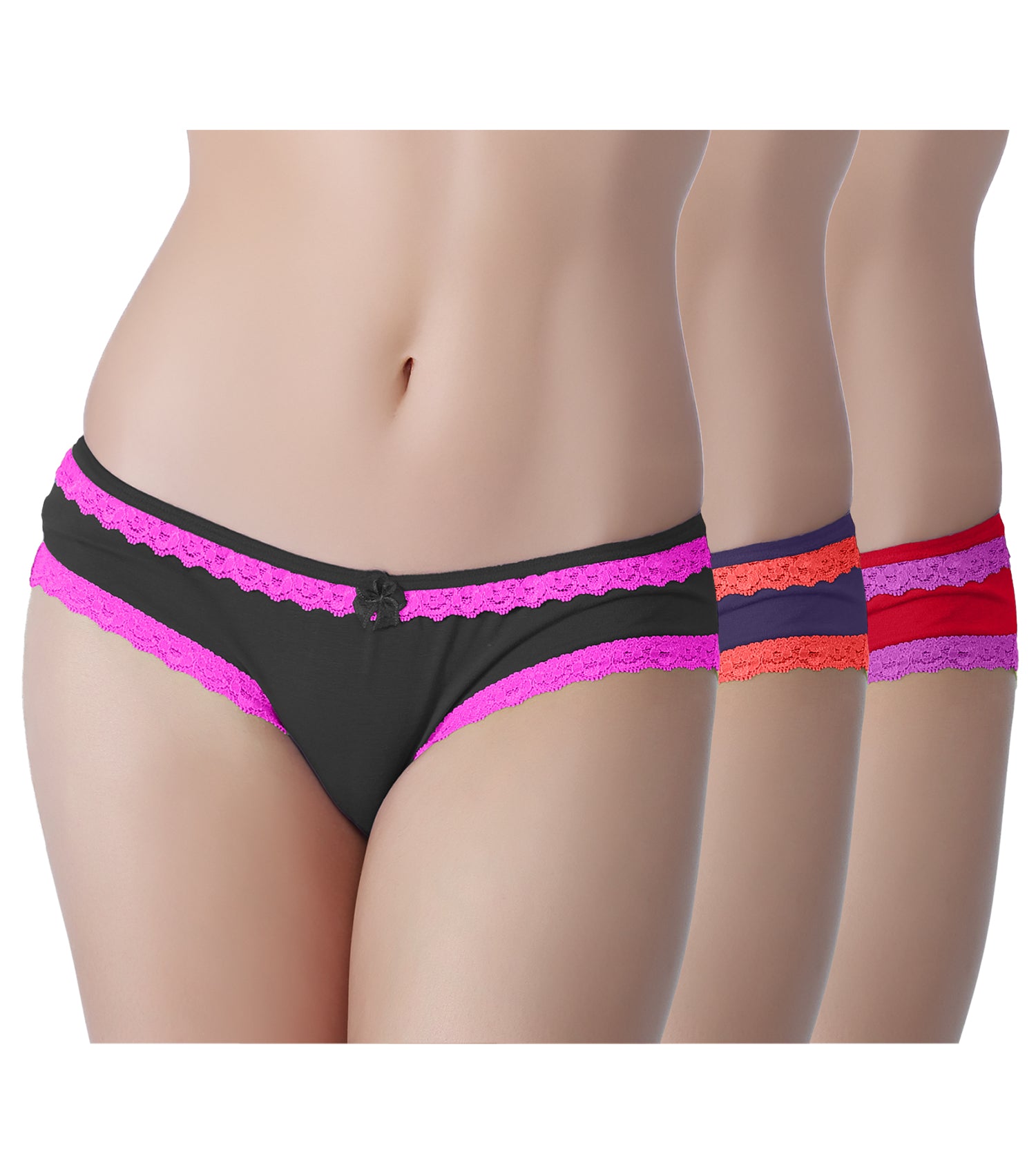 Tipsy Low-Waist Cotton Lycra Bikini Panty with Lace - Pack of 3 | Bold Rush Color | PN447